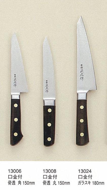 焼入れ職人によって、昔ながらの方法で一丁一丁焼入れを行っています。 ※サプライヤー直送品 ご注文後7~8営業日後の出荷となります【商品名】238266 正広作 口金付 ガラスキ #13024