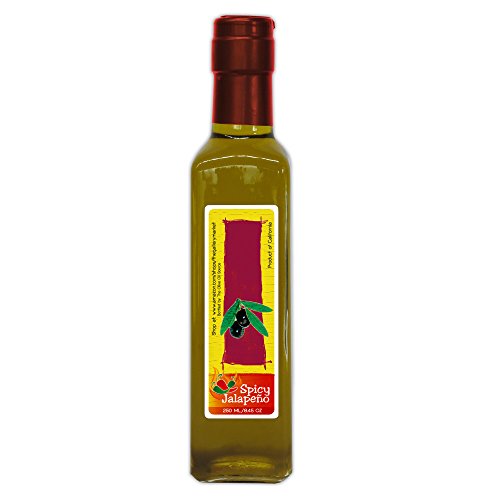Fresh Jalapeño Infused Extra Virgin Olive Oil - Cold Press - 100% California EVOO - Crop Year: Late 2016/Early 2017 - 8.45 fl oz - Quadra Glass Bottle...