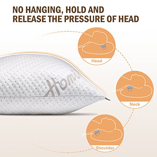 Premium Grade Material: Hypoallergenic pillow is filled by original memory foam and cover is 60% polyester, 40% viscose rayon derived from bamboo. Breathable polyester and high end material is good for hypoallergenic and dust mite resistant. Homitt bed pillow is good choice to close your skin and give you a health sleeping in beautiful night.