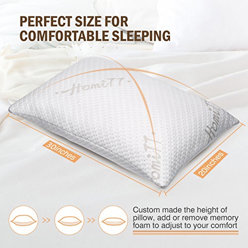 Shredded Memory Foam Pillow, Homitt 20*30 inch Queen Hypoallergenic Pillow for Sleeping Adjustable Bed Pillow Perfect for Sider or Back Sleeper - Washable Bamboo Cover Included