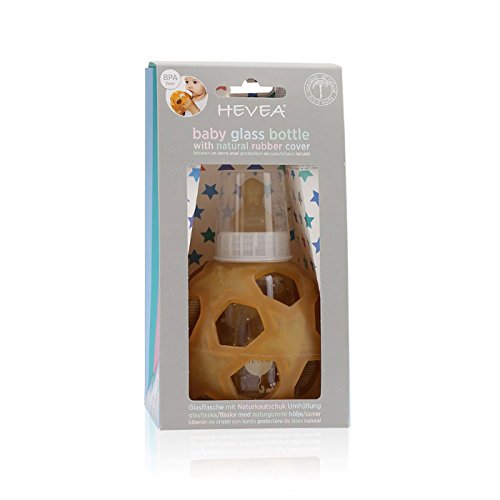 The HEVEA BABY BOTTLE is made from the highest quality, thermal shock resistant borosilicate glass. To help the little ones hold on to it, we have added a natural rubber cover, which not only helps the baby to grab the bottle easily but also helps the bottle from becoming slick. The Hevea natural rubber cover also works as a breakage preventer, as it bounces off if dropped to the floor.Feature