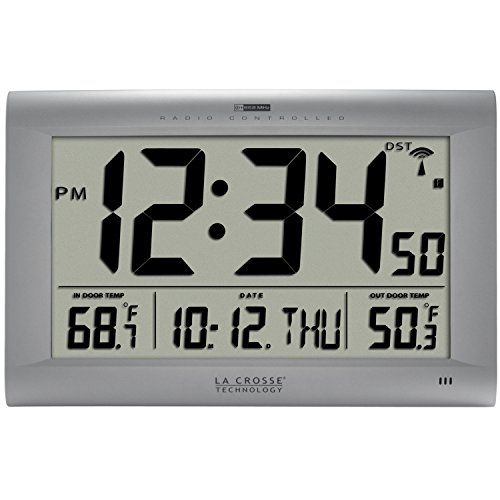 -. Title : La Crosse Technology 513-1311OT Jumbo Atomic Digital Wall Clock with Out Temperature, Silver