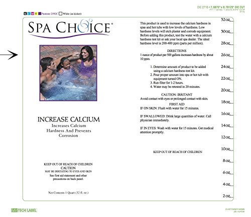 [Product Information]- Spa Choice Increase Calcium is used to increase calcium hardness in spas and hot tubs in areas with low levels of hardness
