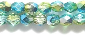 Preciosa Czech Fire 4 mm Faceted Round Polished Glass Bead, 2-Tone Bright Green/Aqua 1/2 Silver, 200-Pack
