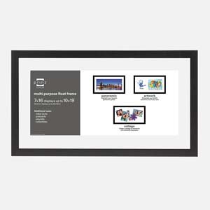 Showcase a treasured memory with this one-of-a-kind float frame. You can display artwork, photos or a treasured keepsake. Double paned glass and a black wood frame gives it a sleek look.