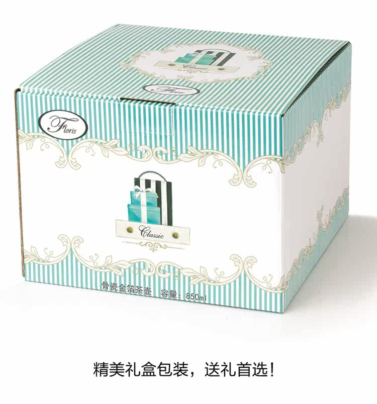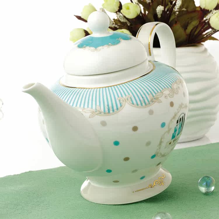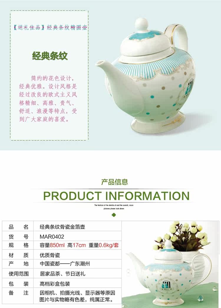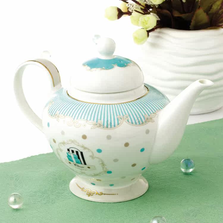 英式简约陶瓷水壶加大容量骨瓷茶壶带过滤孔欧式条纹咖啡壶泡茶壶