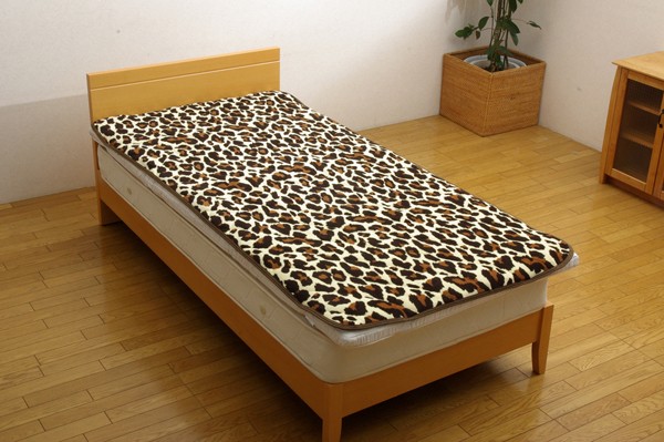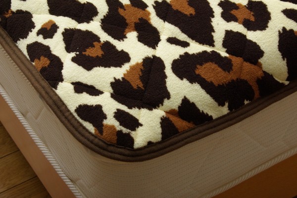 【商品名】敷きパッド セミダブル 豹柄 サンゴマイヤー 『レオパードSD IT』 ブラウン 約120×205cm