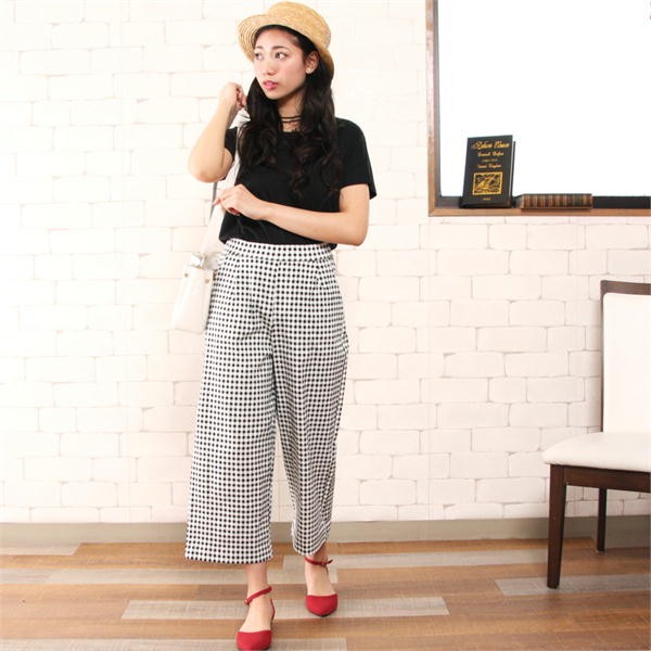 ★ワイドな裾とチェック柄で大人可愛いパンツ★