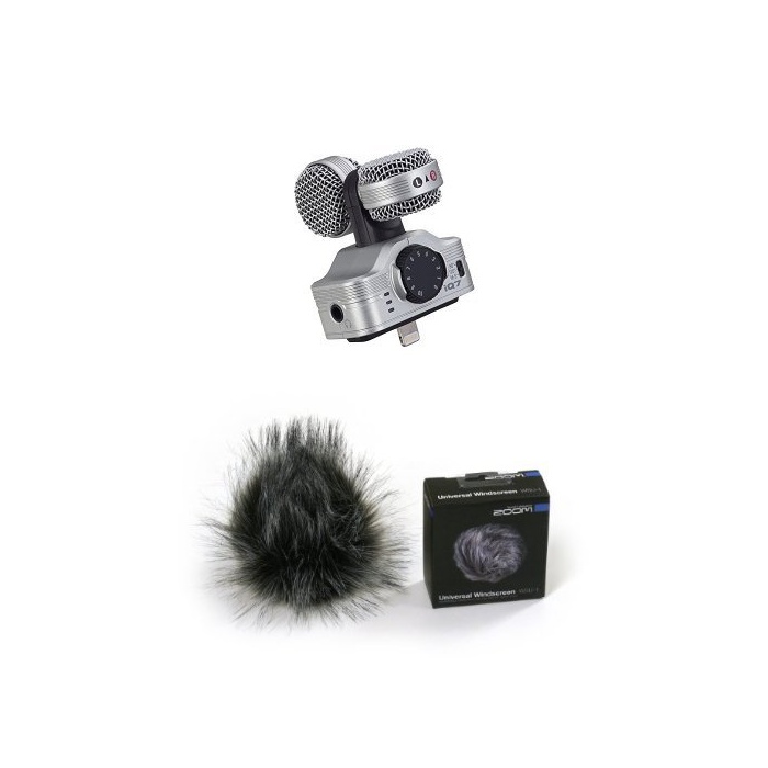 ZOOM MS스테레오 마이크로 폰 iPhone / iPad 용 iQ7과 헤어 리 윈드 스크린의 세트