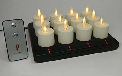 Luminara Rechargeable Flameless Tea Lights: Comes with Charging Base, Remote Control and 12 Rechargeable Tea Light Votive Candles
