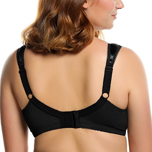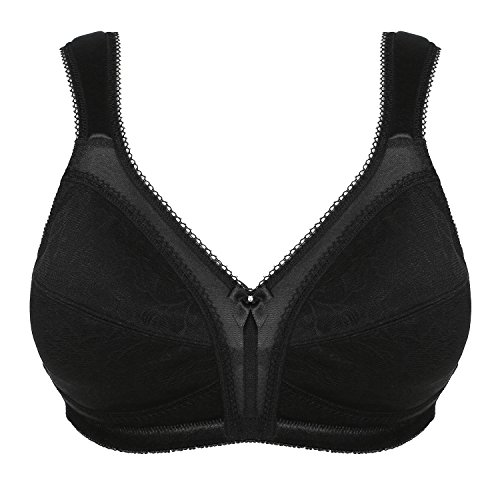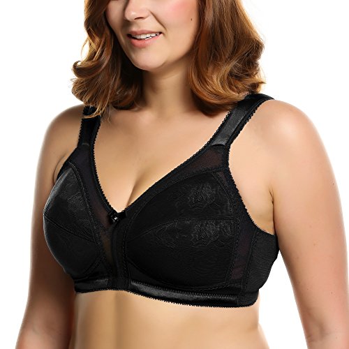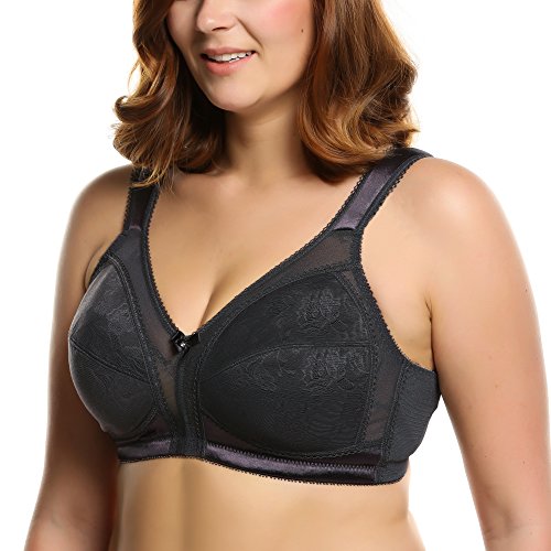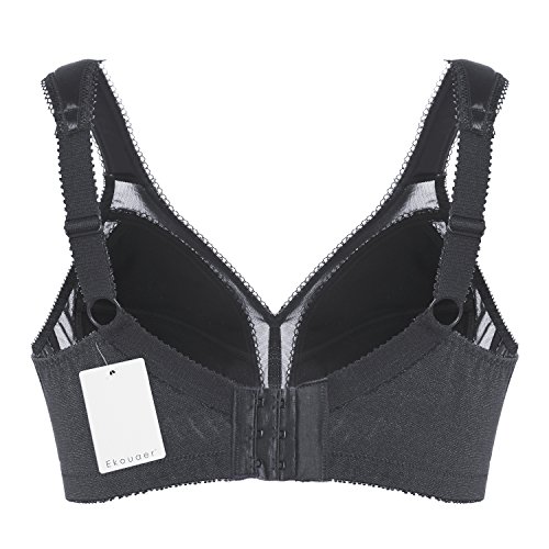 -. Feature : Lace: 85% Polyamide+15% Elastane; Mesh:70% Polyamide+30% Elastane; Cup lining:100% Polyester.Fabric for this bra has passed SGS certification of Colour Fastness to Washing,Free Formaldehyde Content,Azo Dyes / Extra-wide cushioned straps help relieve shoulder pressure. / Seamless back-smoothing minimizer bra with floral lace panel,Centre bow feature / Minimizes the bustline up to 1.5 inches,Full-coverage bra with panels to prevent dig-in.Wide bottom band,Triple back hook-and-eye closure.Avialable sizes:36-44 D,DD/E,DDD/E,G,H. / Please note:Cup size on the item tag is one size smaller than its true size.Tag size E Cup=US DDD Cup,Tag size F Cup=US G Cup. Tag size G Cup=US H Cup.eg: when you place order for US 36H,you'll receive 36G.The size on Amazon link is true size.Besides,wirefree bra won't provide much support as underwire bra.If you need high support bra,please search for "Ekouaer unlined bra"