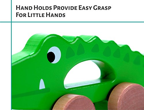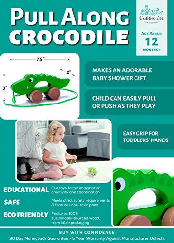 Built For AdventuresCrafted using the finest sustainable wood and painted a bright green, the crocodile toddler toy can be pulled on the four wheels by the hardwearing string. The craftsmanship is evident in how smoothly the wheels turn, while the durability will be increasingly evident as your little one discovers their surroundings!