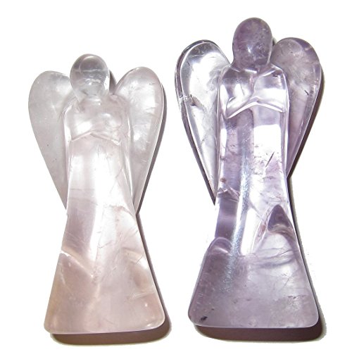 God Angel Set 50 Amethyst Rose & Smoky Quartz Trinity Crystals Clear Healing Figurines 2.5"