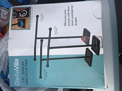 -. Binding : Home -. Brand : Villa Bella -. Color : Black -. EAN : 0849755012858 -. Feature : Showcase your jewelry with these sleek contemporary designs / 3 Seperate trees make a very nice display / Small, medium and large size jewelry trees -. IsAutographed : 0 -. Label : BellaVilla -. Manufacturer : BellaVilla -. PackageQuantity : 1 -. ProductGroup : Home -. ProductTypeName : HOME -. Publisher : BellaVilla -. Studio : BellaVilla -. Title : BellaVilla 3 Piece Jewelry Tree with Tray -. UPC : 849755012858