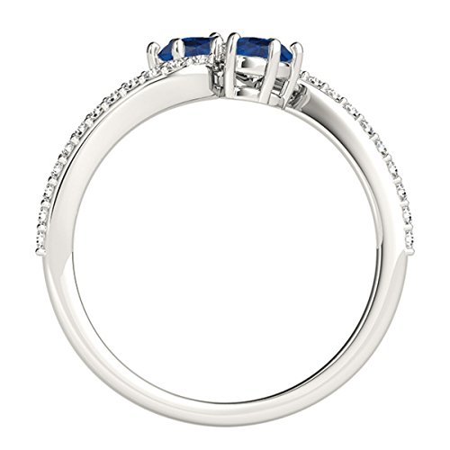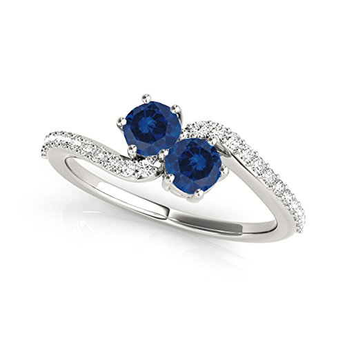 -. Title : 1 Ct Two Stone Sapphire And Diamond Ring 14K White Gold