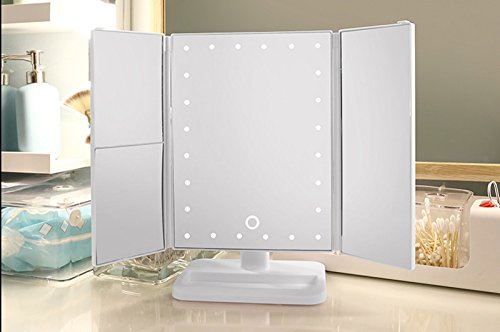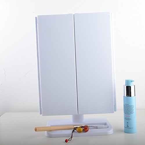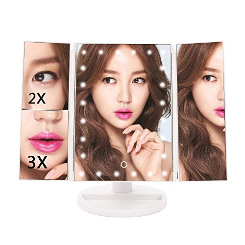 Makeup Mirror Trifold 24 LED Lighted with Touch Screen, 1x/2x/3x Magnification and USB Charging, 180° Adjustable Stand for Countertop Cosmetic Makeup