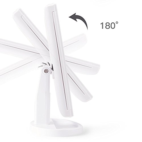 180-degree free rotation the vanity mirror stands on your countertop can be freely adjusted and fixed ensuring a perfect and comfortable viewing angle Tri-fold and detachable design makes you can take it anywhere you go