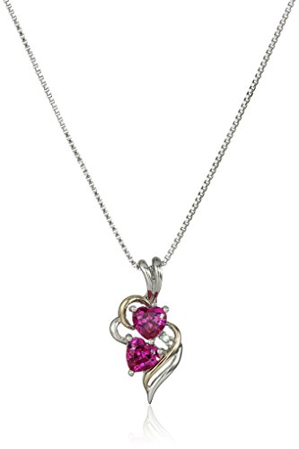 -. Binding : Jewelry -. Brand : Amazon Collection -. Color : red -. Department : womens -. EAN : 0696737785084 -. Feature : Sterling silver and 14k yellow gold necklace featuring two stone heart shape in created ruby with diamond accent pendant and matching three prong heart shaped earrings / Box chain with sP.R.Ing ring 18" / gemstones may have been treated to improve their appearance or durability and may require special care. / All our diamond suppliers confirm that they comply with the Kimberley Process to ensure that their diamonds are conflict free. / Great for everyday wear. / Imported -. Label : Amazon Curated Collection -. Manufacturer : Amazon Curated Collection -. Model : ESN5374BCRCA -. MPN : ESN3374BCRCA -. PartNumber : ESN3374BCRCA -. ProductGroup : Jewelry -. ProductTypeName : FINEOTHER -. Publisher : Amazon Curated Collection -. Studio : Amazon Curated Collection -. Title : Sterling Silver and 14k Yellow Gold Diamond Accent and Created Ruby Heart Pendant Jewelry Set -. UPC : 696737785084