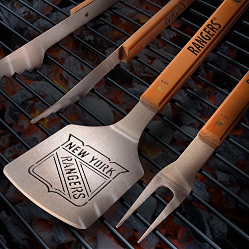 NHL New York Rangers 3PC BBQ Set, Heavy Duty Stainless Steel Grilling Tools