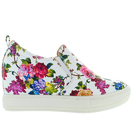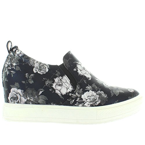 Binding : Apparel Product Description Wanted Shoes, located in the heart of Manhattan and established in 1994, pushes boundaries to bring our customers all of the latest looks for less. With its wide range of styles including the trendiest and incredibly comfortable sneakers, boots, high heels, loafers, flats, pumps, booties and much more, we ensure that no woman gets left behind. Our mission is to make every woman, at any age, look and feel like the one of a kind sophisticated individual which she is. Our classic, elegant, quality products will leave you astonished, allowing you the chance to treat yourself to all your guilty pleasures without the guilt! No longer needing to break the bank, our selection is perfect for any event - be it that romantic date, job interview, night on the town, or simply those days and evenings where you want to look and feel glamorous. We cater to those hard-working women out there, both in the office and in the classroom, who deserve more play and less work with our colorful arrangement of simple, sexy, and enviously fashionable designs. Our shoes will become an all-time favorite and an absolute must have in your wardrobe - for the fashion forward trend setters of the world. These women's "Wanted" floral slip-on wedge sneakers with double gore insets are the perfect shoe for a multi-seasonal vibe that flatters every woman. Whether you're keeping it simple in loafers, living the classy life in heels, or joining the trendsetters in platform oxfords you'll be headed to shoe heaven with our footwear collection. Slip into this season with our feminine street-wear inspired "Petals" slip-on wedge sneaker; whether you're going urban or casual chic these sneakers are the perfect choice. Our endless selection will satisfy those shoe addicts at heart; eat, sleep, buy Wanted Shoes, repeat. After all, a girl can never have too many pairs of shoes. 0