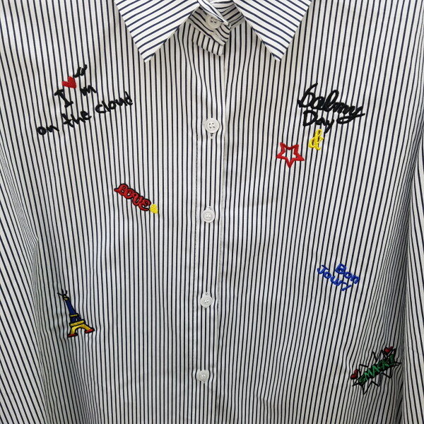 봉주르자수셔츠는 기본 스트라이프에 자수가 놓아져 있는 스타일입니다.