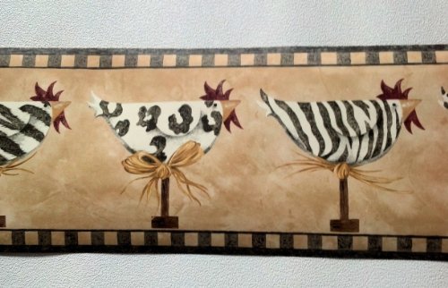 -. Feature : 15 Foot Long Spools - Prepasted Wallpaper Border / 6.25 Inches Wide - Pattern MCB5260 Black Edge / Rooster Wallpaper Border / Farming Wallpaper Border / Kitchen Wallpaper Border