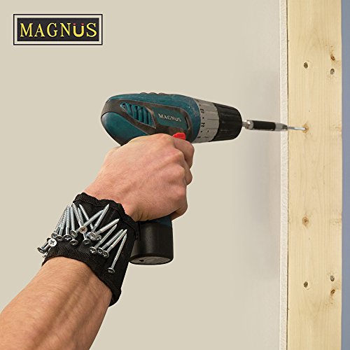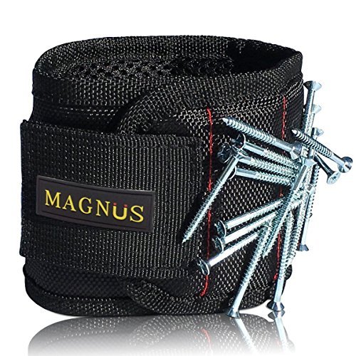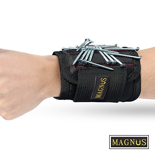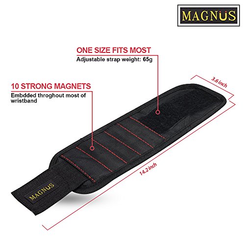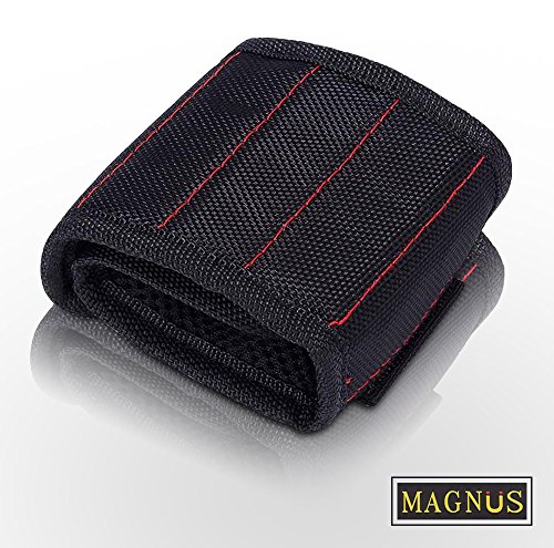 Magnus Magnetic Wristband -10 Strong Neodymium Magnets embedded throughout wristband for holding nails, screws, bits, fasteners, washers, bolts, small tools, and much more.