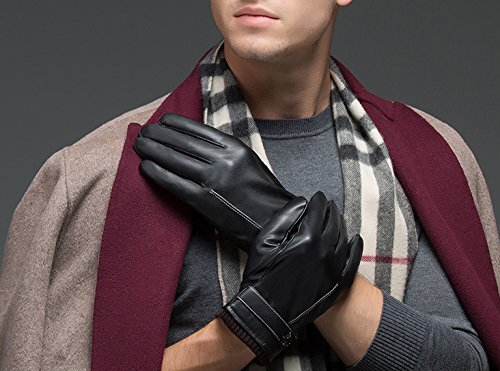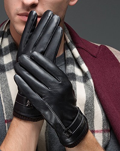 (Elezay)/Accessories/Cold Weather Accessories/DIRECT FROM USA/Elezay Men's Winter Warm Gloves Touchscreen Leather Gloves Cashmere Lining
