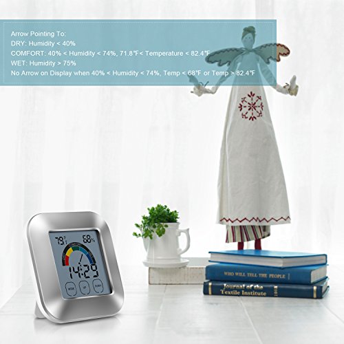 Adoric Life Indoor Thermometer Temperature Humidity Monitor with Smart Touchscreen Backlight Built-in Clock & Timer Digital Hygrometer