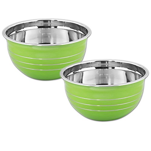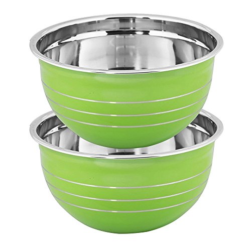 Kosma Set of 2 Premium Stainless Steel Deep Mixing Bowl | Salad Bowl in Green colour exterior and Mirror Finish Interior - 22 cm (3 Litre)
