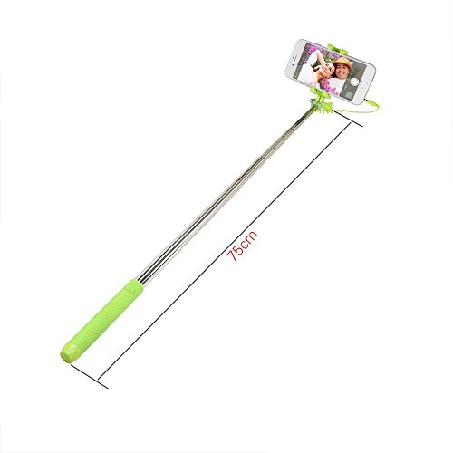 RK-Mini 3 Supreme Mini III Pen Size Gift Wired Selfie Stick , Min Longth Only 13.4cm , Max Longth up to 75cm, Popular and Portable Gift,Support IOS or Android Smart Phone, Using Very Easy (Green)