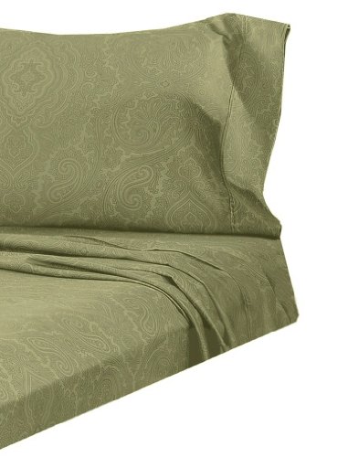 WRINKLE RESISTANT MARRIKAS 600TC SAGE ITALIAN PAISLEY SHEET SET FULL