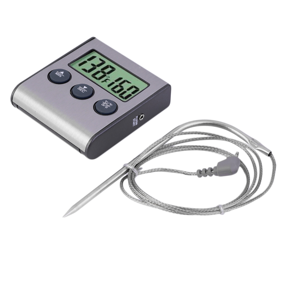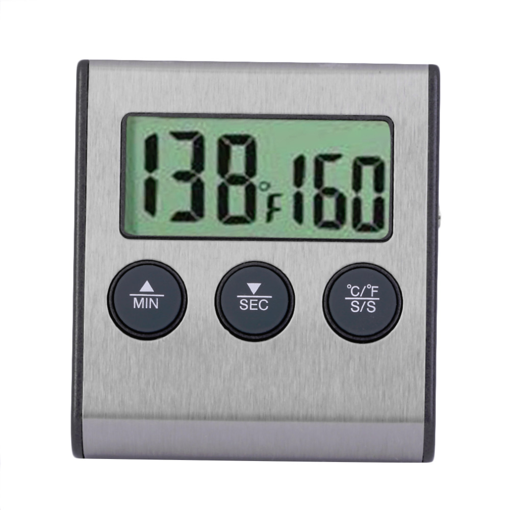 | Features: 100%Brandnewandhighquality! Digitalcookingthermometerisprogrammedwithpresettemperaturelevelsforpoultrybeefwellpork/vealbeefmediumhamandbeefrare/fish. Presettemperaturescanbemanuallychanged. Alarmsoundswhenfoodreachessetinternaltemperature. Range32degreeFahrenheitto482degreeFahrenheitand0degreeCelsiusto250degreeCelsius Fahrenheit/Celsiusswitchable. 23hour59minutecountdowntimer. Stainlesssteelfaceplate. Stainlesssteelfoodprobewithbraidedcord. Magneticbackwithstand. Operateson1AAAbattery(NOTincluded). Specifications: Material:StainlessSteelPlastic Measuringtemperaturerange:0-250degreeCelsius(32482degreeFahrenheit) Temperatureaccuracy:1degreeCelsius(0degreeCelsius-100degreeCelsius)1.5degreeCelsius(101degreeCelsius-250degreeCelsius) Timerrange:99MIN59SEC Battery:1PCx1.5voltAAA(Notincluded) Dimension:70mmx65mmx18mm LCDDisplayArea:46mmx21mm Cordlength:100cm Probe:10.9cm Color:Silver!#!amp!*!Black Packageincludes: 1xFoodCookingThermometer |