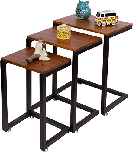 -. Binding : Kitchen -. Brand : Trademark Innovations -. Color : Brown -. EAN : 0641799701701 -. Feature : Set of 3 nesting tables large table size: 18"L x 12"W x 24"H / Medium table size: 16"L x 11"W x 20"H / Small table size: 13"L x 10"W x 18.5"H / Cedar Wood top with metal frame. Some assembly required. / By Trademark Innovations -. Label : Trademark Innovations -. Manufacturer : Trademark Innovations -. Model : TBLE-NESTING -. MPN : TBLE-NESTING -. PackageQuantity : 1 -. PartNumber : TBLE-NESTING -. ProductGroup : Kitchen -. ProductTypeName : KITCHEN -. Publisher : Trademark Innovations -. Studio : Trademark Innovations -. Title : 3-Piece Cedar Wood & Metal Nesting End Table Set by Trademark Innovations -. UPC : 641799701701
