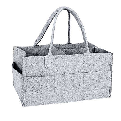 - 🎄STURDY MATERIAL: The nursery organizer and diaper caddy is made of high quality and eco-friendly thick felt fabric which is soft, durable, lightweight and Machine Washable, handles design for easy carry. It can be folded when not in use.