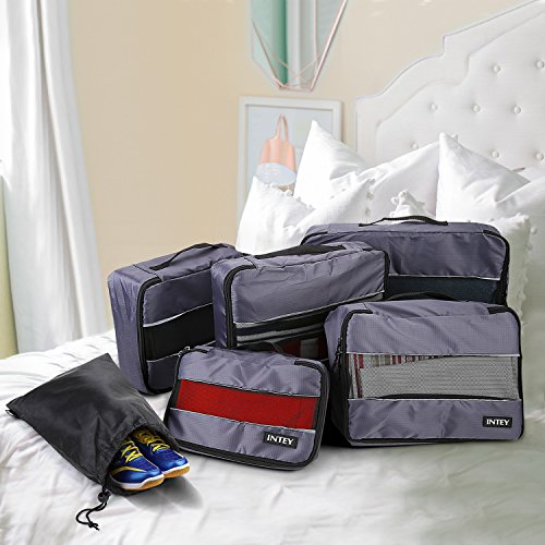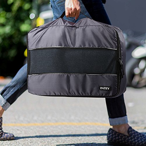 Convenient The 5 piece packing bags set featuring a foldable handle for easy lifting. Top quality zippers and pulls operate easily even when the packing squares are fully packed.