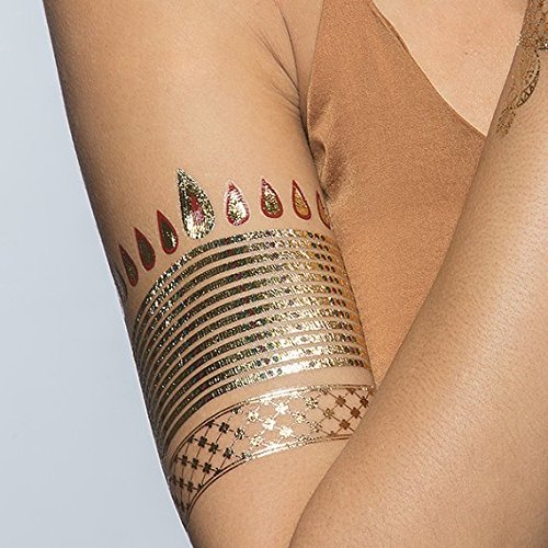 - WHAT'S INCLUDED: Metallic Tattoo Sheets. Application instructions included. Perfect for Halloween, cosplays, photoshoots, club nights, birthdays, arts & crafts projects, festivals, charity events, and sports games. Tattoo body art is suitable for men, women, boys and girls. Apply faux tats on your own ankle, arm, belly button, face, foot, forearm, lower back, hip, neck, chest shoulder, waist, upper back, wrist or anywhere in between!