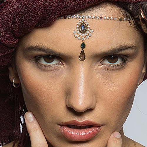 Tattify Gold And Ruby Armband and Bindi Temporary Tattoo - Indian Princess Sheet 1 (Set of 1 sheet) - Other Styles Available and Fashionable Temporary Tattoos