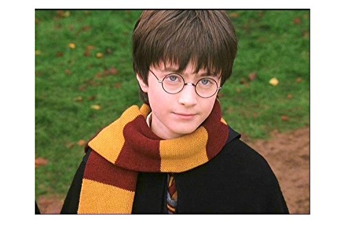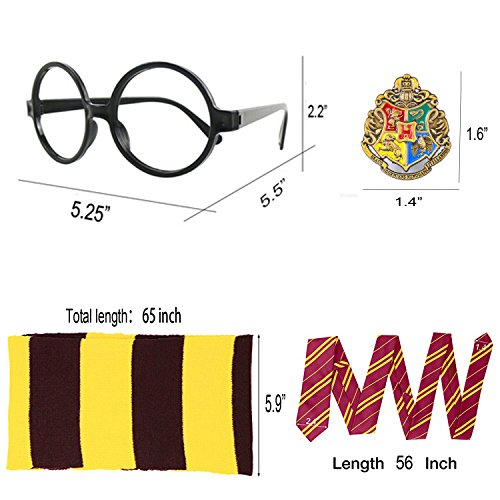Studio : Shindel Publisher : Shindel Binding : Toy Product Description Harry Potter Striped Knit Scarf Striped Tie with Novelty Glasses College Badge for Cosplay Costumes Accessories Christmas Present, 4 PCS