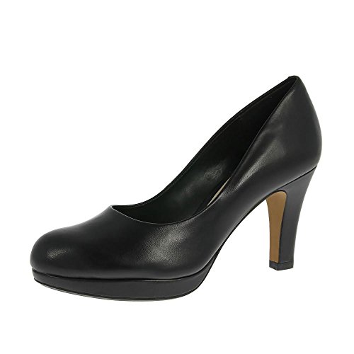 Studio : Clarks Publisher : Clarks Binding : Apparel Product Description Clarks Crisp Kendra are a fabulous leather court shoe, which are perfect for work or nights out and can easily be worn with jeans, trousers, skirts or dresses Made with a buttery soft black leather upper with matching heel and platform Easy slip on design with a soft cushioned leather insole with built-in comfort pads offering tremendous comfort, great for being on your feet all day and night Built with a height boosting 3.5 inch heel and 0.5 inch platform 0