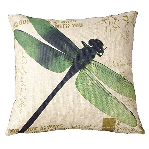 Leaveland Cotton Linen Retro Vintage Home Decorative Indoor/Outdoor Throw Cushion Cover / Pillow Sham Dragonfly 16''x16''