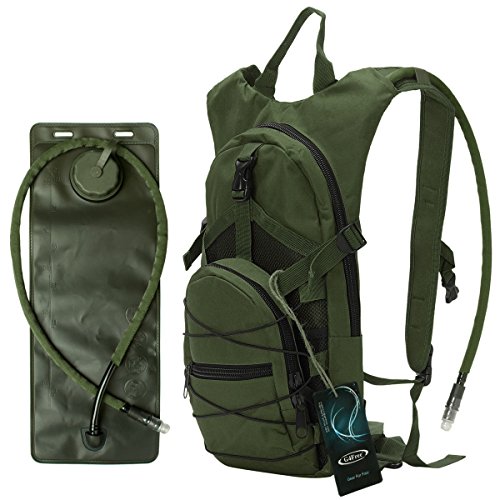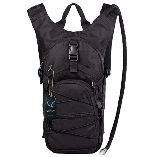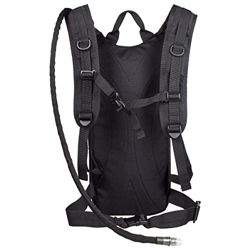 New hydration backpack with 3.0L water bladder included. Features 2 front pockets in addition to water bladder compartment. Made from tough 600D polyester fabric. Additional Molle webbing makes this little hydration pack even more versatile. Bladder holds 3.0L and features a Big Mouth opening and a matching covered sleeve for the drinking tube.