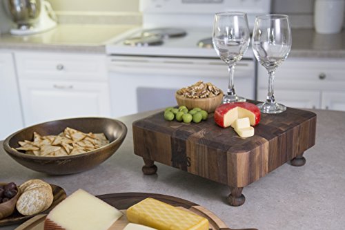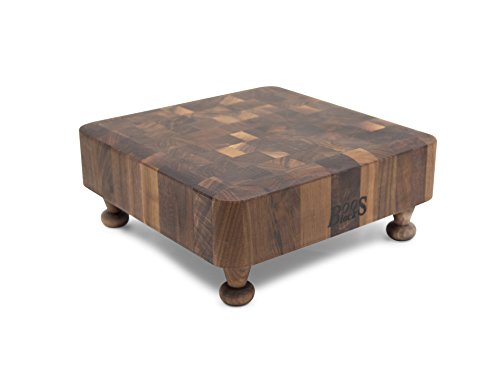John Boos Raised Walnut Wood Square End Grain Chopping Block with Tapered Feet, 12 Inches x 12 Inches x 3 Inches