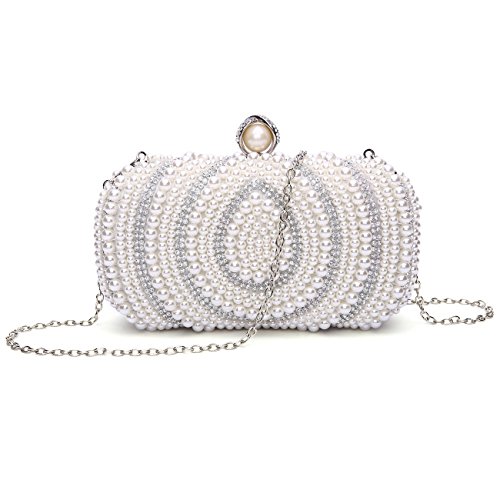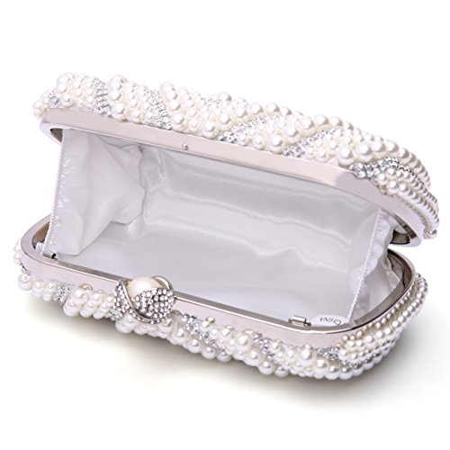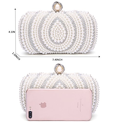 -. Feature : Ideal for holding essentials like keys,mirror for touch-ups, lipstick and smartphone,some makeup,car keys, cards and money etc. / FABRIC: Polyester with meticulous pearl embroidery. / SIZE: Approximate measurements: 6.5"(L) * 1.96"(W) * 3.97"(H). / FEATURES:Removable silver chain inside which can be used as a shoulder bag, cross body bag or ring cluth bag. / OCCASION:Beautiful clutch bag is perfect for weekend, wedding, evening party, prom, cocktail various parties, night out or formal occasions and so on.