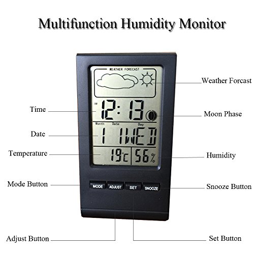 Multipurpose Monitor: Various functions of temperature, humidity, weather forecast, calendar, moon phase, time and alarm.