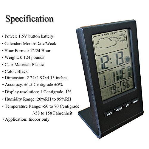 Alarm with Snooze Function: While alarming, push the snooze button and it will alarm in 5 minutes again. It can be repeated for 4 times.