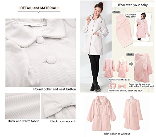 Binding : Apparel Product Description You can enjoy various style with this mama coat! There are 3 intended purposes and 2 different styles. The gathered collar is detachable with bottun. After it is removed, the retro-inspired round neck appears. At the waist portion, the lovely ribbon is decorated. It is also removable. [How to use as 3WAY coat] You can get on/out a baby pouch with front/back zipper. Unzip and get on baby pouch to the zipper on your front/back. (If you want to use as piggybag style, remove collar and back ribbon) *When you hold your baby, please use baby sling. 0