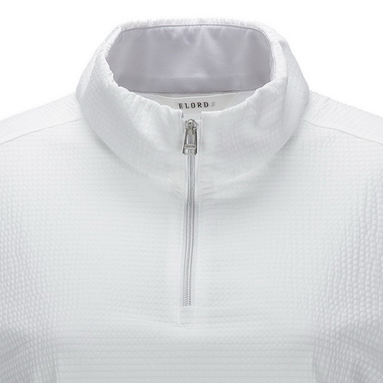 - 하이넥 디자인에 반집업 여밈으로 단정함.