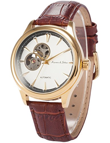 -. Title : [ケーエス]KS メンズ KS301 アナログ 自動機械式 スケルトン ダイヤル ブラウン レザー バンド 腕時計