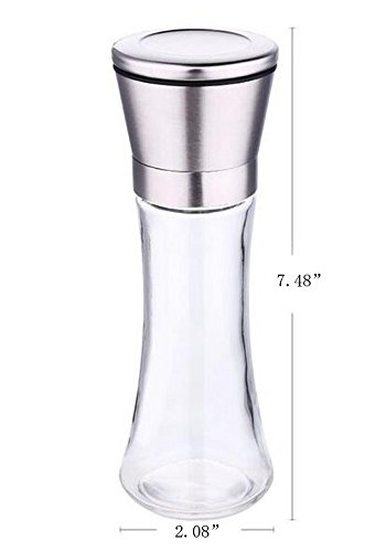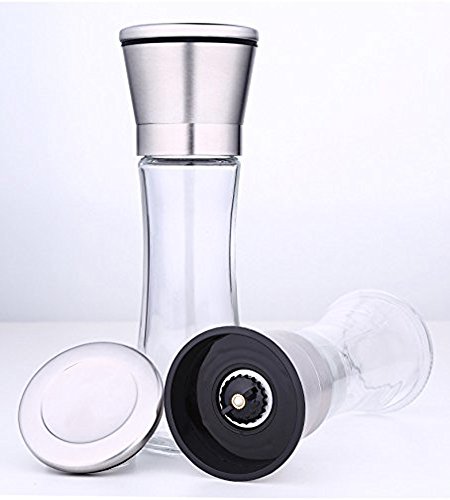 Stylish looks with stainless steel grinders, these tall glass salt and pepper shakers will never rust or lose their eye-catching design. The body is made of thick glass so you can easily see when you need to re-fill the shakers